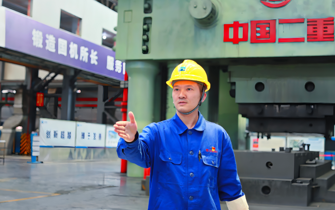 近日,在中國(guó)機(jī)械工業(yè)集團(tuán)有限公司所屬中國(guó)第二重型機(jī)械集團(tuán)德陽(yáng)萬(wàn)航模鍛有限責(zé)任公司(以下簡(jiǎn)稱“國(guó)機(jī)集團(tuán)中國(guó)二重”),8萬(wàn)噸模鍛壓力機(jī)班組班長(zhǎng)葉林偉正帶領(lǐng)同事通過(guò)手柄操縱重機(jī)“起舞”,開(kāi)展航空模鍛件的鍛造工作。